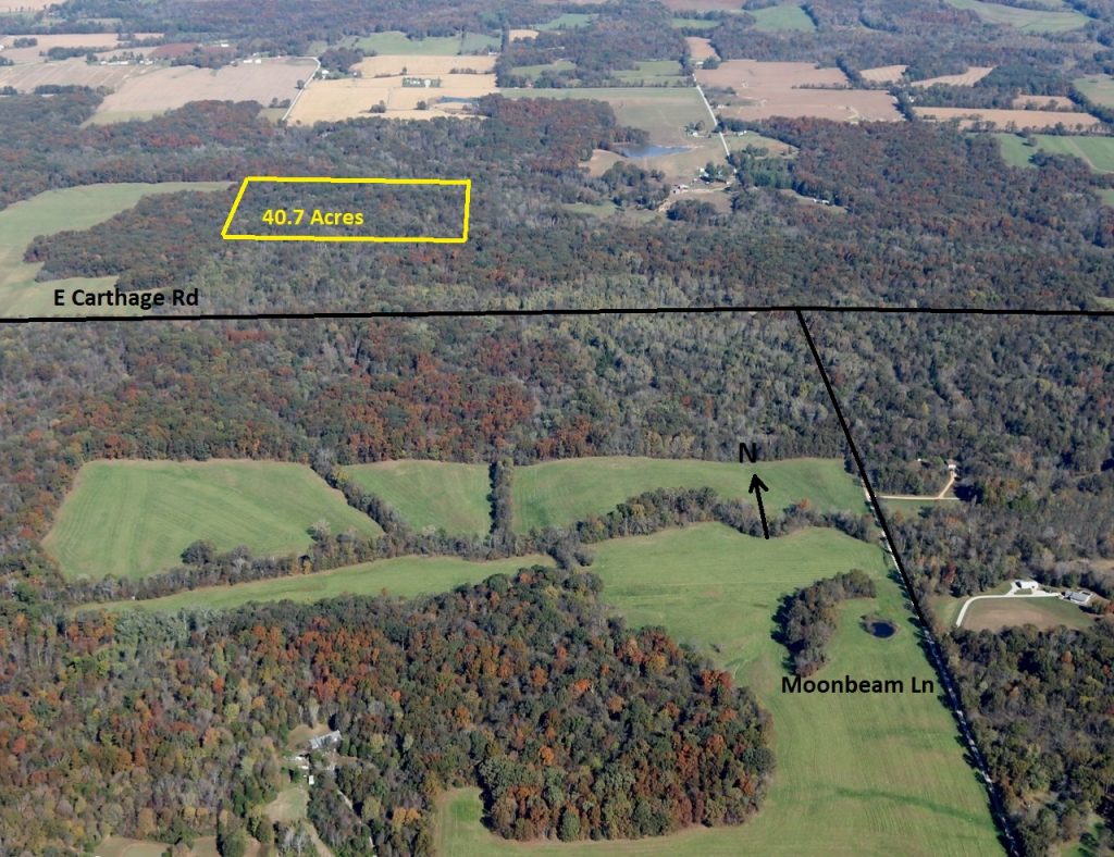 40.7 surveyed acres has all timber rolling land. Property is NE of Mt. Vernon IL. Offering some of the best wildlife habit in the area. Located in Section 13, T1S-R3E, Field Township. North of East Carthage Road, which is now a good road to travel. Tracts range from 15 acres to 47.69 acres and can be purchased together or separately.