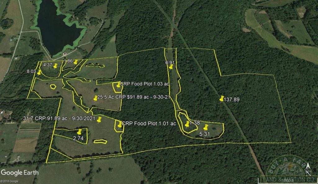 216.94 acres wooded and CRP in Johnson County IL between Goreville and Vienna. Excellent whitetail and turkey hunting. I enjoyed walking the woods on this property as they are much like I remember wooded property being when I was growing up. It has a good canopy and very little undergrowth, easy to walk through or ride an ATV through. There is an old homestead on the property with trails through much of the woods; a very pretty place.