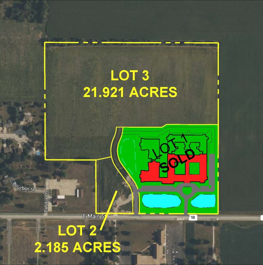 The property is located on the East End of Streator on Illinois Route 18 (Main Street) at the newly constructed public street “Holly Brook Drive”. Nearest major intersections are Fuller Avenue and Main Street (1/4 Mile West of Site) and E. 19th Road and Main Street (1/4 Mile East of Site).