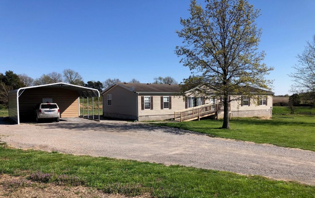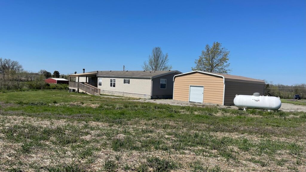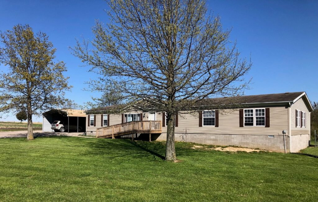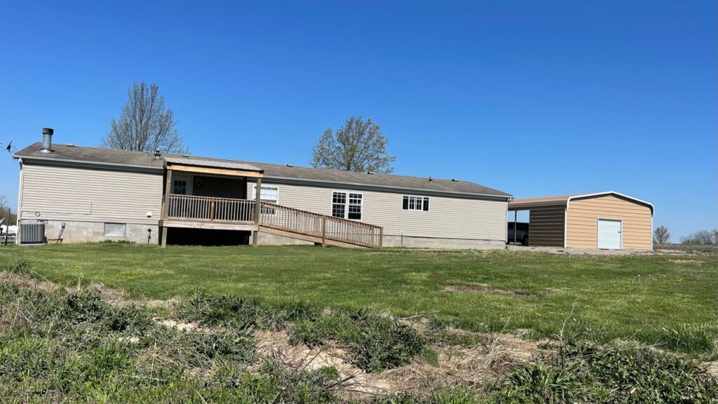 There is a lot to this property! 4B/2B manufactured home on 22 acres with 3 large sheds for a variety of storage. This home is very spacious at 2,432 sq. ft. with a large living room and also a large family room with a woodburning fireplace. New front porch and back deck. The large buildings have some concrete paving around them and would be great for equipment storage and/or a business. Approximately 9 acres cropped with acreage available for pasture, etc. Three to 4 acres wooded. City water and also a well on property. Private easement around north barn to back ponds. No ponds are included. Steeleville School District. Taxes $990 (2021) subject to change.