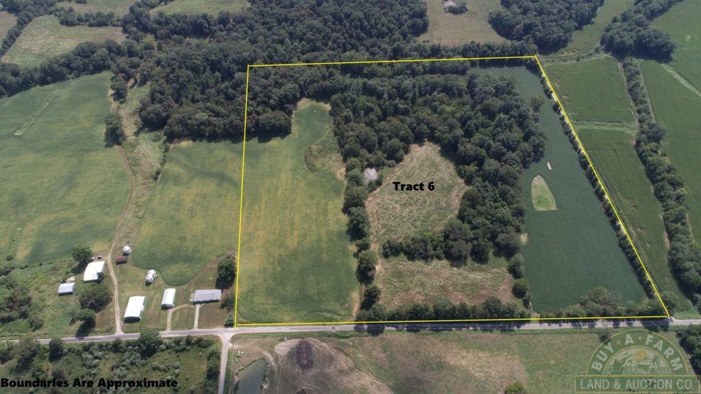 Approximately 20 acres of cropland of which 5.4 acres is enrolled in CRP leaving approximately 20 acres timberland and pond. Tract is rolling to gently rolling plus some flat fields. Frontage on East Flagg Road and North Jackson Hole Lane. Part of Section 21, T4S-R1E.