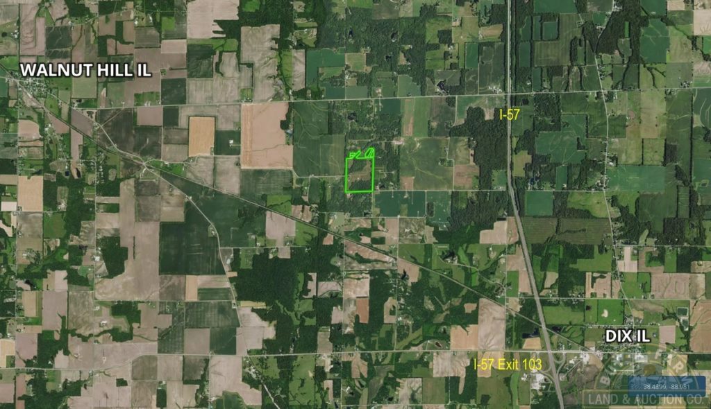 57+- acres wooded and tillable in NW Jefferson County IL between Dix and Walnut Hill. This property is made up of one large tract of 51.11 acres and 18 small wooded lots. 21.8+- acres cropland. The balance wooded. The property has been in CRP but recently expired and is available for the 2023 crop year. There were once oil wells on this property but they are closed and one injection well and 2 water recovery wells remain. On the West side of the property is an old homesite that has electric and a well. Rural water is ¼ mile away.