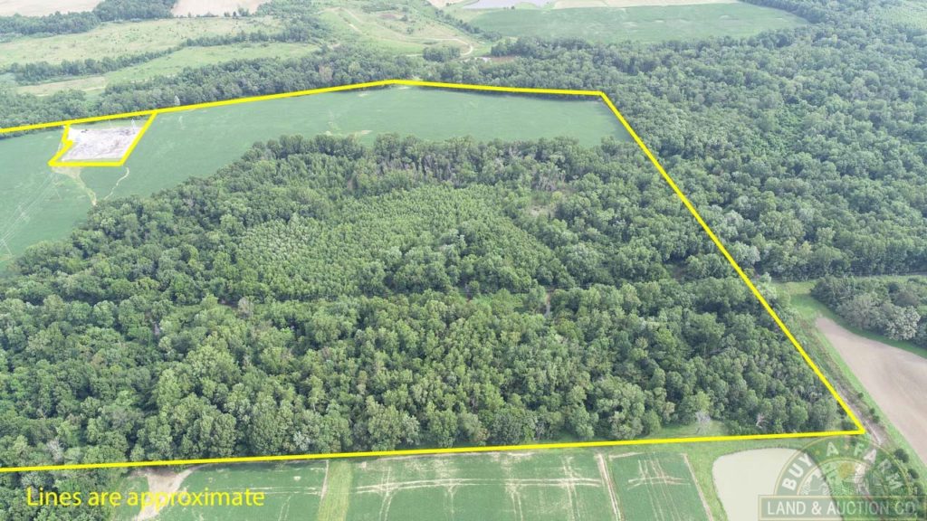 This 97.4 acres has 60 acres tillable currently leased at $131/acre. 10.3 acres are under a CRP contract at $90/acre. the balance is in woodland.