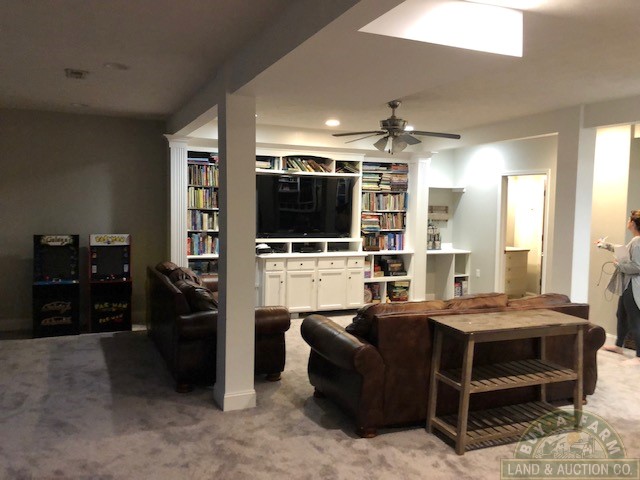 There are 4550 sq ft of living space, 3550 sq ft on main level and 1000 sq ft in the finished basement with large family room, built-in entertainment center, shelving, built-in desk and bedroom.