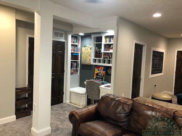Hard-to-find custom-built home in Carterville’s premium neighborhood of Twin Lakes is being offered for sale. An appealing lakefront home at the end of a cul-de-sac. A stained drive leads up to a spacious 3-car garage. From garage you enter the home through the mud room, conveniently located is the laundry and onto the custom kitchen.