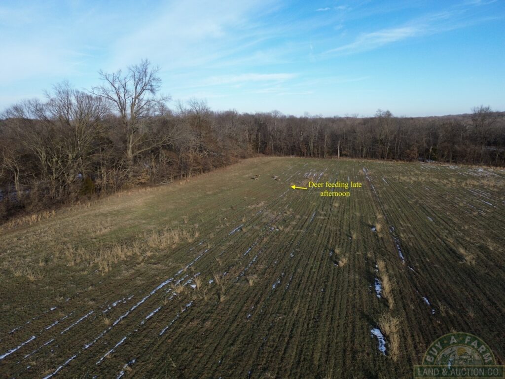 Total acres are 277, with 165 acres of tillable and a crop productivity index of 95.2. There are gentle rolling hills and plenty of timber that offers some good cover for prime deer and decent turkey hunting.