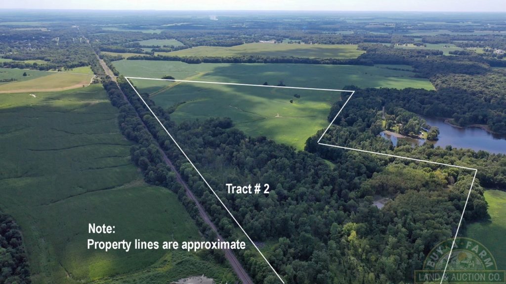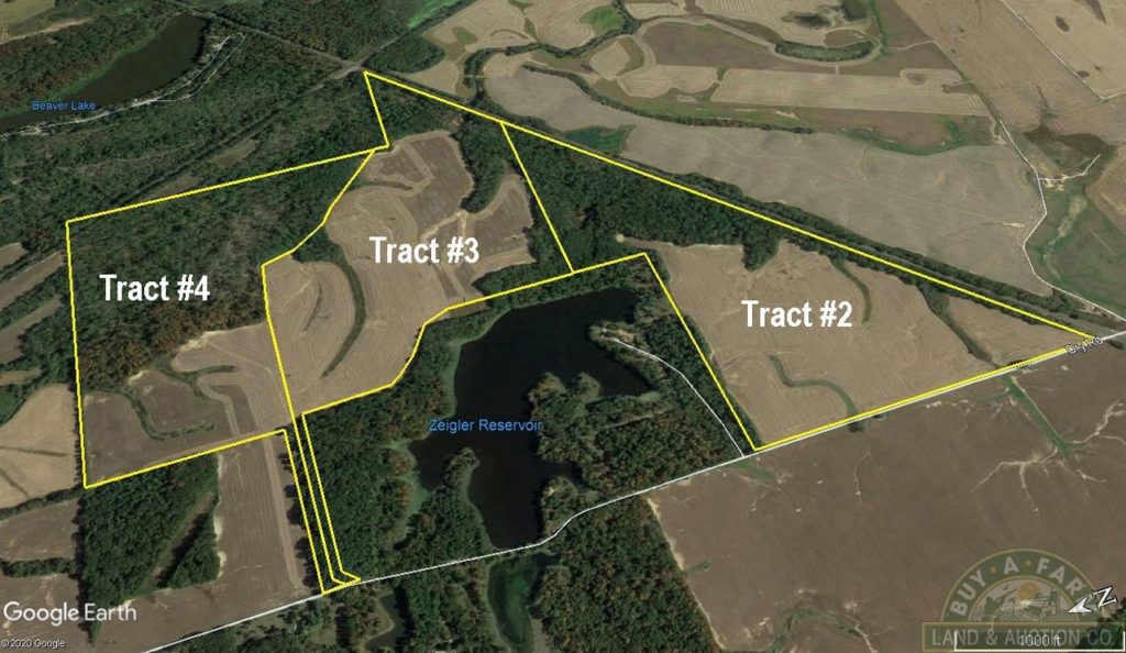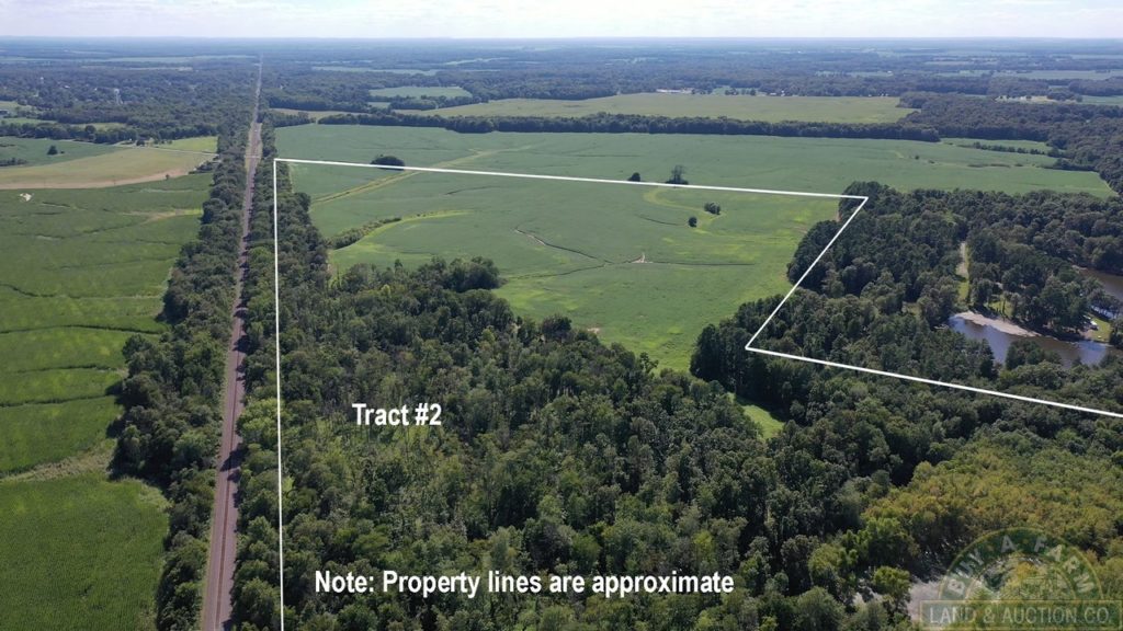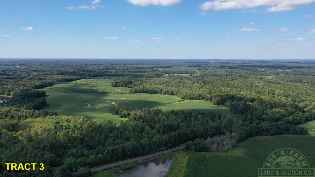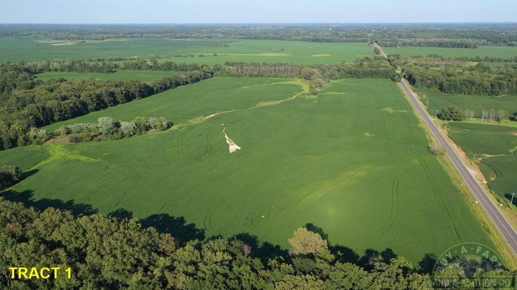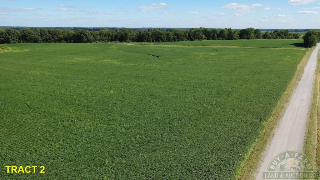 Note:  Between Tract #1 and Tract #2 on Dry Road. You may see a sign on a 56+- acre tract with grain bins a 2 large pole barns.  This tract is not a part of the auction, but is available as a listing at buyafarm.com