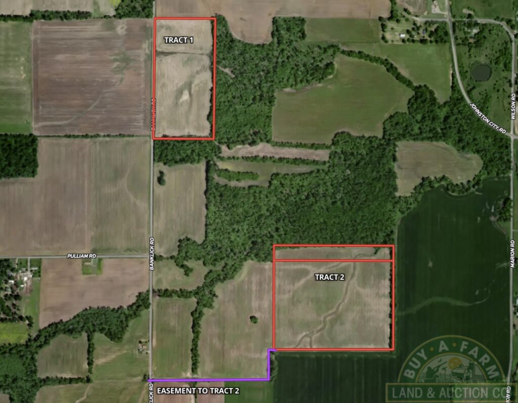 - Both tracts located on Banklick Road, SW of Galatia, East of Johnson City, NW of Harrisburg