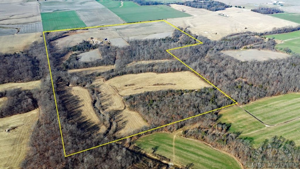 100-acre mix of cropland and wooded 8+- miles SE of Nashville IL, as the crow flies. 53+- acres of cropland with a PI of 98.3, some smaller creek bottom fields. There are oil wells and a tank set on the property, but no mineral rights. Scattered woods, field lines, food source and the creek make for excellent whitetail hunting.
